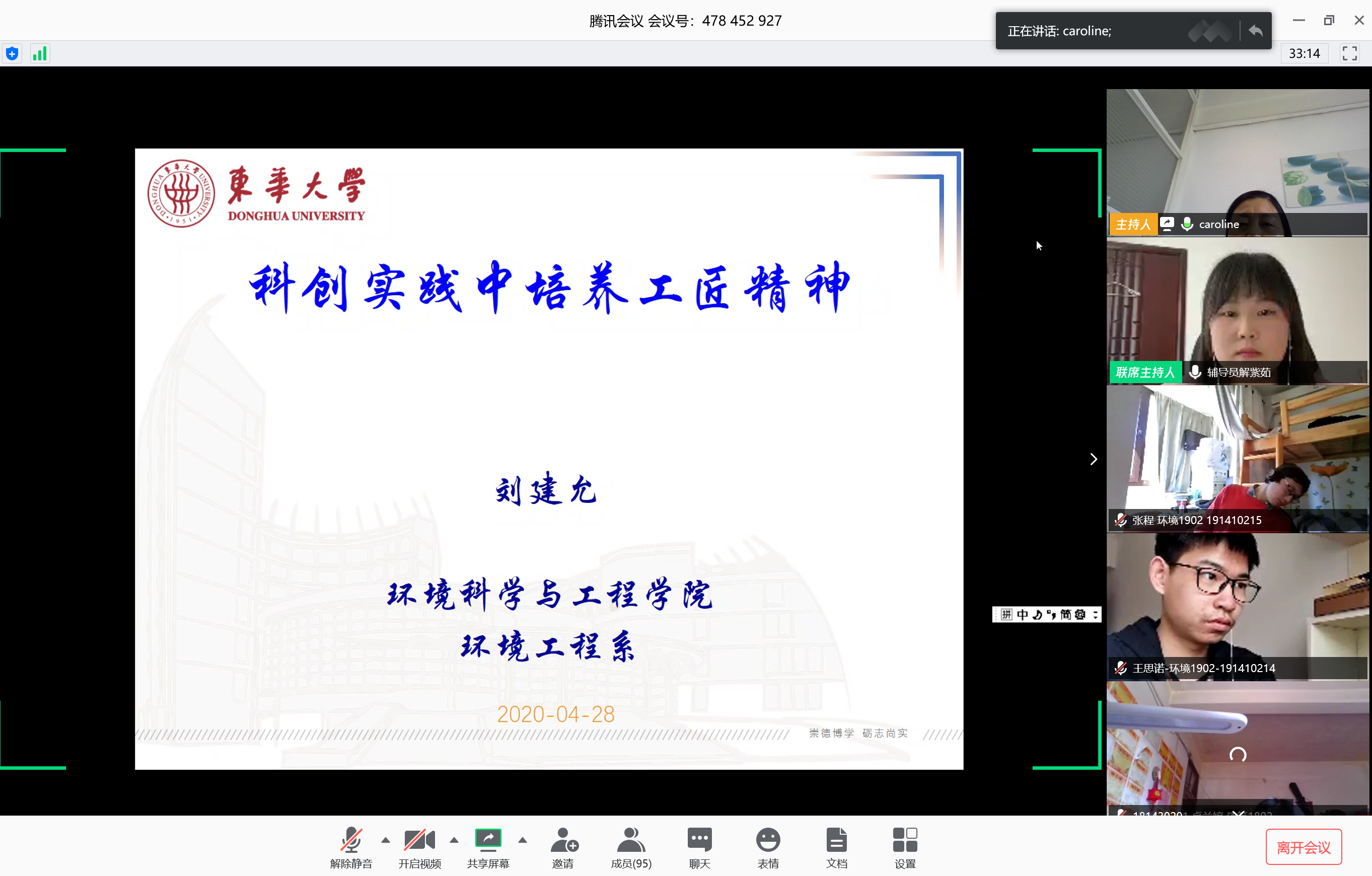 在本次线上讲座中,环境学院的同学们认真聆听,对专业有了更加深入的了解与认同,对如何培养自身的科研素养有了新的认识。通过此次线上直播讲座,同学们对“互联网+教育”的学习方式有了直观的体验,满足了获取知识的渴望,扩宽和丰富了不同专业学生的学习渠道。