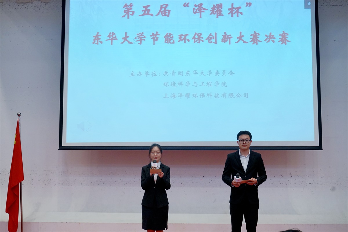 6月4日下午,由共青团东华大学委员会、东华大学环境学院、上海泽耀环保科技有限公司联合举办的第五届“泽耀杯”东华大学大学生节能环保创新大赛决赛在我校图文信息中心第二报告厅举行。经过初赛的层层选拔,来自环境学院、材料学院、化工生物学院、人文学院的15支团队脱颖而出,进入最终的角逐。