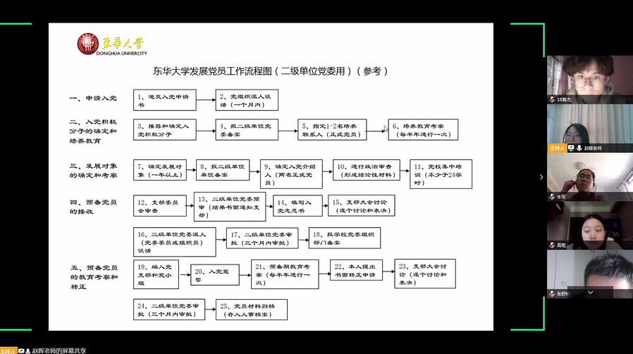 本期培训内容主要分为基础篇、升级篇和实践篇三个部分,其中基础篇注重理论知识的积累,主要开设了“入党流程解读”、“环境学院学生党支部工作介绍”等课程,同时要求学员自学包括《共产党宣言》、《中国共产党章程》、《中国共产党党员教育管理工作条例》、《习近平新时代中国特色社会主义思想学习纲要》和环院党漾青春“战‘疫’特辑”系列等学习资料。升级篇则是紧跟时事热点,围绕抗疫主题设计了多项课程。实践篇更加注重党员的自我教育和实践作用,组织学员围绕“理想信念的力量”的主题开展指尖微党课,开展线上“最强大脑”知识竞赛等。