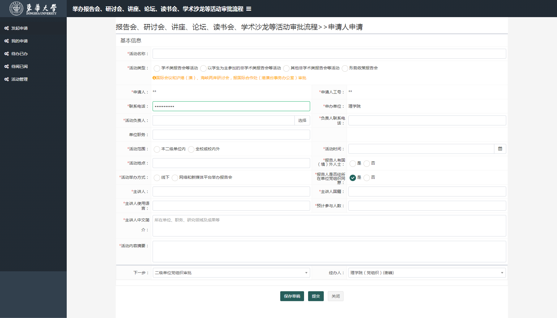 【学术】东华大学报告会、研讨会、讲座、论坛、读书会、学术沙龙等活动审批管理流程及审批表