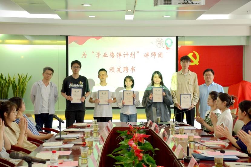 活动中,进行了师生党支部结对共建仪式,贾洪伟、孟仑分别介绍了双方党支部的建设情况,并代表各自党支部共同按下了象征着“携手并进”的手印。崔运花、刘建树共同为“携良师,育英才”工作坊揭牌。“学业陪伴计划”讲师团成员熊茜汇报了阶段性工作成果,教师代表王会、学生代表马铭、李姝丽结合参与“学业陪伴计划”的收获感悟和躬身思考发言交流。现场,还为新一届“学业陪伴计划”讲师团颁发聘书。
